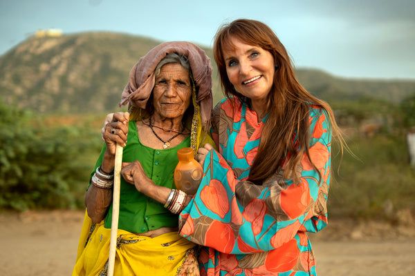 Dit is waar mijn hart ligt. Midden in de droogte en eenvoud van Rajasthan, op een matje in het zand, naast een vrouw die alles belichaamt wat mij inspireert: kracht, waardigheid en overlevingsdrang, ondanks armoede.