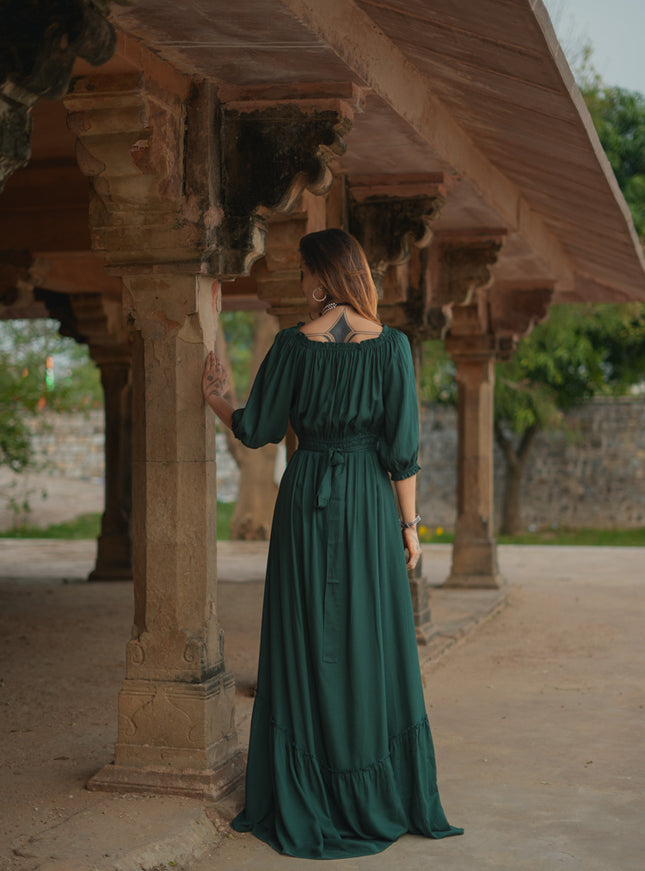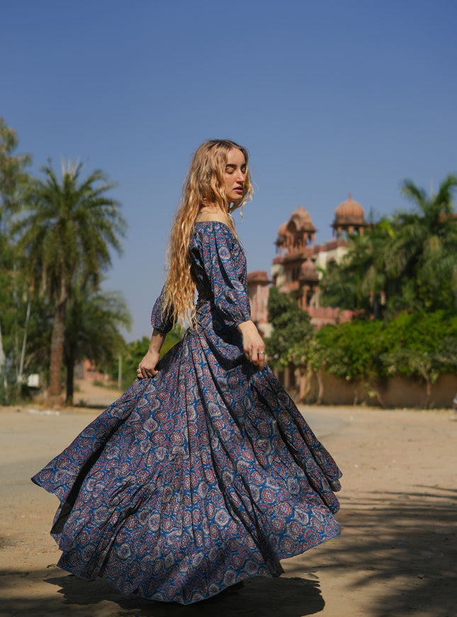 Rani lange jurk De "Rani" jurk, wat "Koningin" betekent in het Sanskriet, is een meesterwerk van elegantie en vrouwelijkheid. Met zorg ontworpen en liefdevol vervaardigd in India, straalt deze jurk een adembenemende schoonheid uit. De perfecte belichaming van vrouwelijke charme...