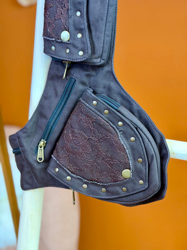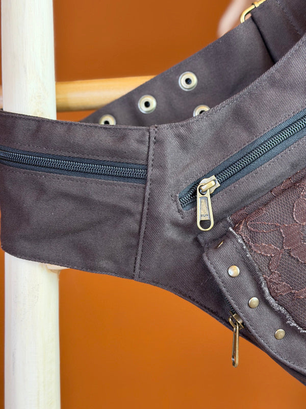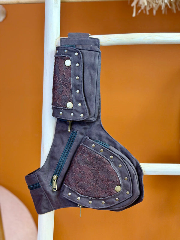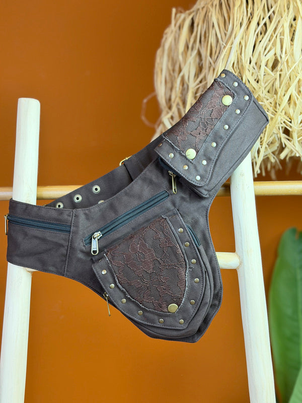 Deze prachtige hipbelt bestaat uit twee tasjes: ƩƩn grotere en ƩƩn kleinere, bevestigd aan een lange, verstelbare riem. Perfect om je essentials dicht bij je te dragen – of je nu op reis bent, een festival bezoekt of gewoon je handen vrij wilt houden.