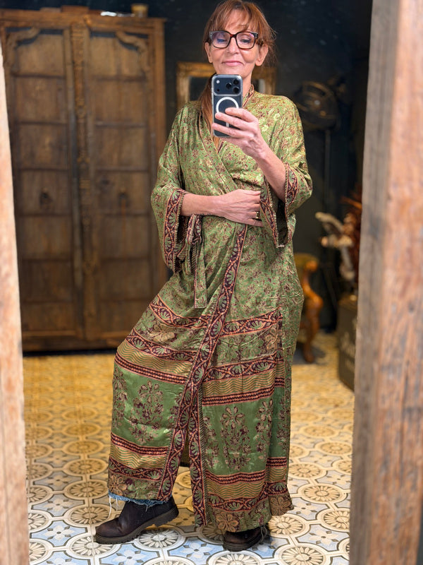 Was diesen Kimono wirklich besonders macht, ist die Verwendung von Upcycling-Sari-Seide in Kombination mit anderen außergewöhnlich schönen Stoffen. Das bedeutet, dass jeder Kimono ein einzigartiges Meisterwerk mit eigenem Charakter und eigener Geschichte ist. Wir bei TwoSisters glauben an Nachhaltigkeit und daran, aus recycelten Materialien etwas Schönes zu schaffen. Mit diesem Kimono tragen Sie nicht nur ein schönes Kleidungsstück, sondern auch ein Stück ethische Mode.