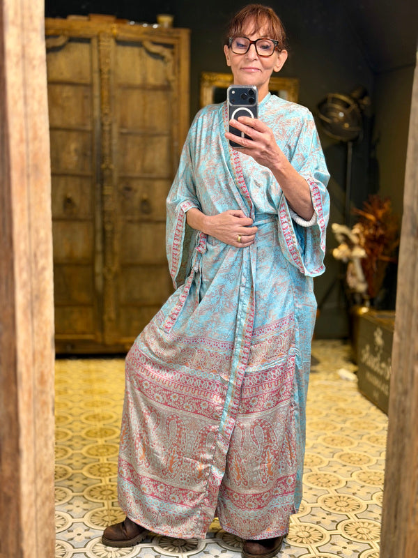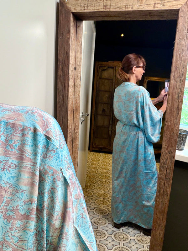 Was diesen Kimono wirklich besonders macht, ist die Verwendung von Upcycling-Sari-Seide in Kombination mit anderen außergewöhnlich schönen Stoffen. Das bedeutet, dass jeder Kimono ein einzigartiges Meisterwerk mit eigenem Charakter und eigener Geschichte ist. Wir bei TwoSisters glauben an Nachhaltigkeit und daran, aus recycelten Materialien etwas Schönes zu schaffen. Mit diesem Kimono tragen Sie nicht nur ein schönes Kleidungsstück, sondern auch ein Stück ethische Mode.