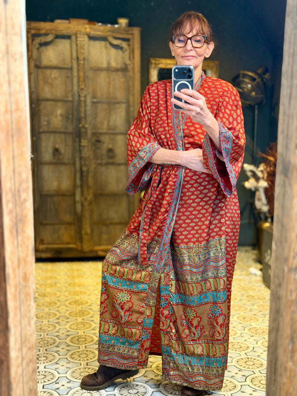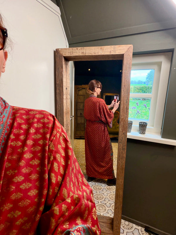 Was diesen Kimono wirklich besonders macht, ist die Verwendung von Upcycling-Sari-Seide in Kombination mit anderen außergewöhnlich schönen Stoffen. Das bedeutet, dass jeder Kimono ein einzigartiges Meisterwerk mit eigenem Charakter und eigener Geschichte ist. Wir bei TwoSisters glauben an Nachhaltigkeit und daran, aus recycelten Materialien etwas Schönes zu schaffen. Mit diesem Kimono tragen Sie nicht nur ein schönes Kleidungsstück, sondern auch ein Stück ethische Mode.