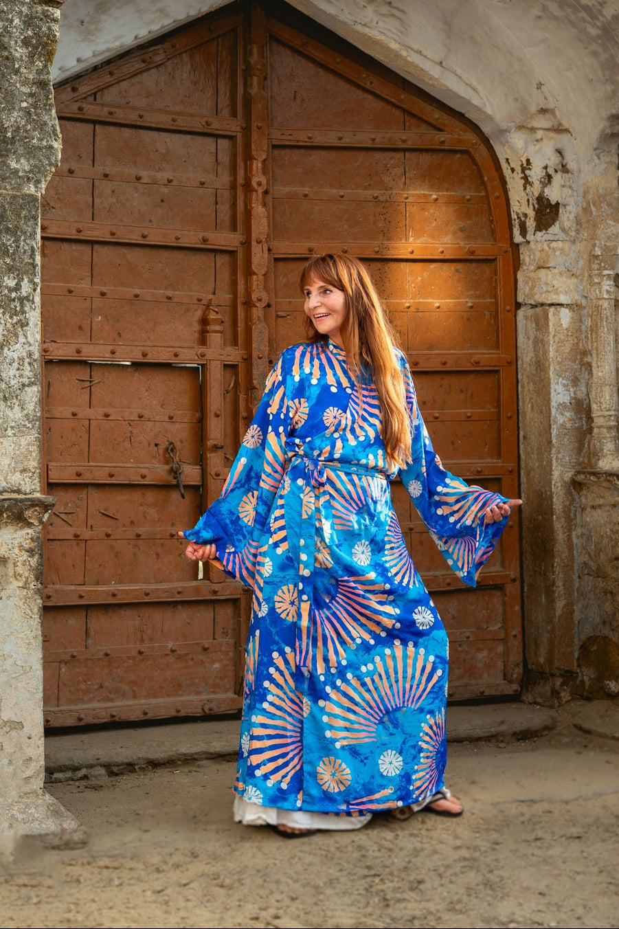Was diesen Kimono wirklich besonders macht, ist die Verwendung von Upcycling-Sari-Seide in Kombination mit anderen außergewöhnlich schönen Stoffen. Das bedeutet, dass jeder Kimono ein einzigartiges Meisterwerk mit eigenem Charakter und eigener Geschichte ist. Wir bei TwoSisters glauben an Nachhaltigkeit und daran, aus recycelten Materialien etwas Schönes zu schaffen. Mit diesem Kimono tragen Sie nicht nur ein schönes Kleidungsstück, sondern auch ein Stück ethische Mode.