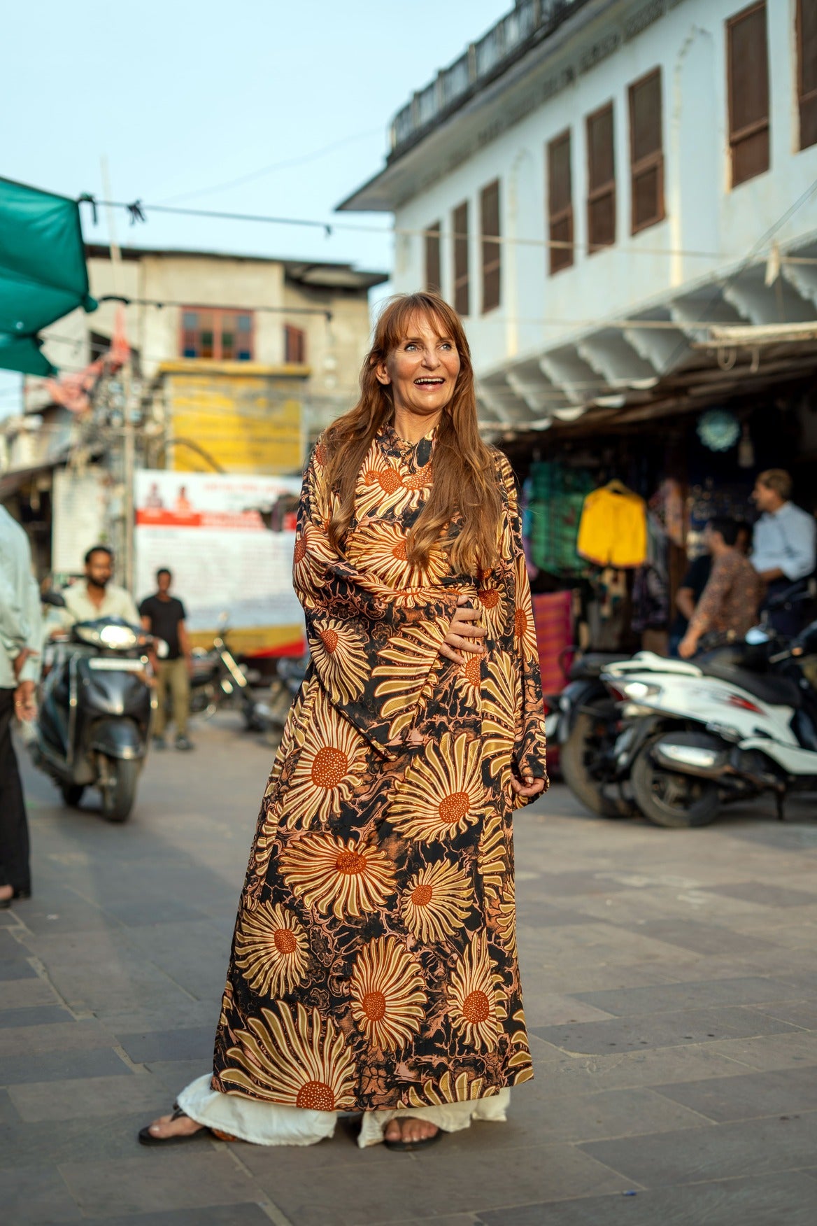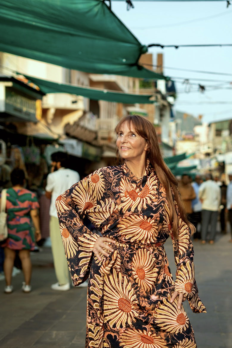Was diesen Kimono wirklich besonders macht, ist die Verwendung von Upcycling-Sari-Seide in Kombination mit anderen außergewöhnlich schönen Stoffen. Das bedeutet, dass jeder Kimono ein einzigartiges Meisterwerk mit eigenem Charakter und eigener Geschichte ist. Wir bei TwoSisters glauben an Nachhaltigkeit und daran, aus recycelten Materialien etwas Schönes zu schaffen. Mit diesem Kimono tragen Sie nicht nur ein schönes Kleidungsstück, sondern auch ein Stück ethische Mode.