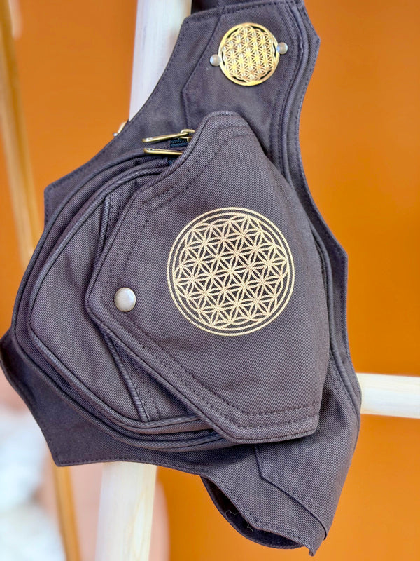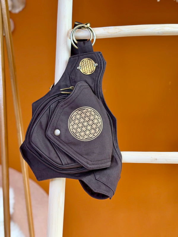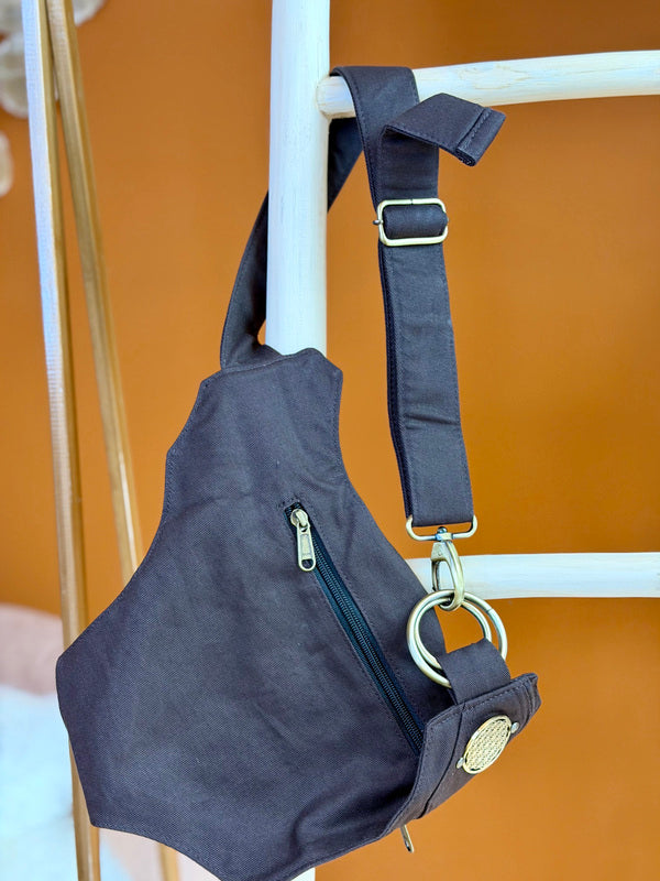 Deze prachtige hipbelt bestaat uit een tasje, maar achter de klep bevinden zich twee vakken met een hele sterke ritsĀ bevestigd aan een lange, verstelbare riem. Perfect om je essentials dicht bij je te dragen ā of je nu op reis bent, een festival bezoekt of gewoon je handen vrij wilt houden.