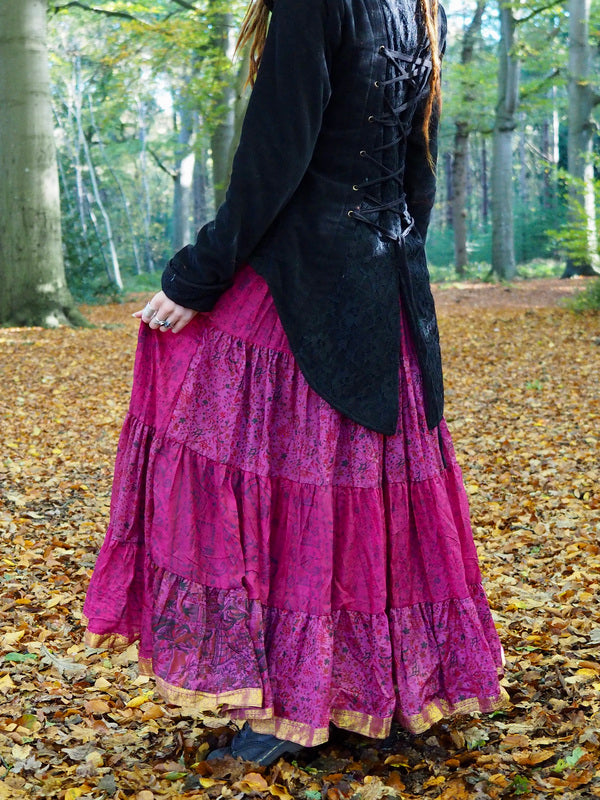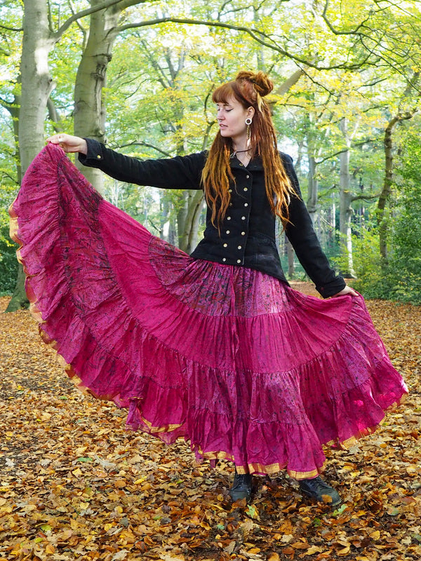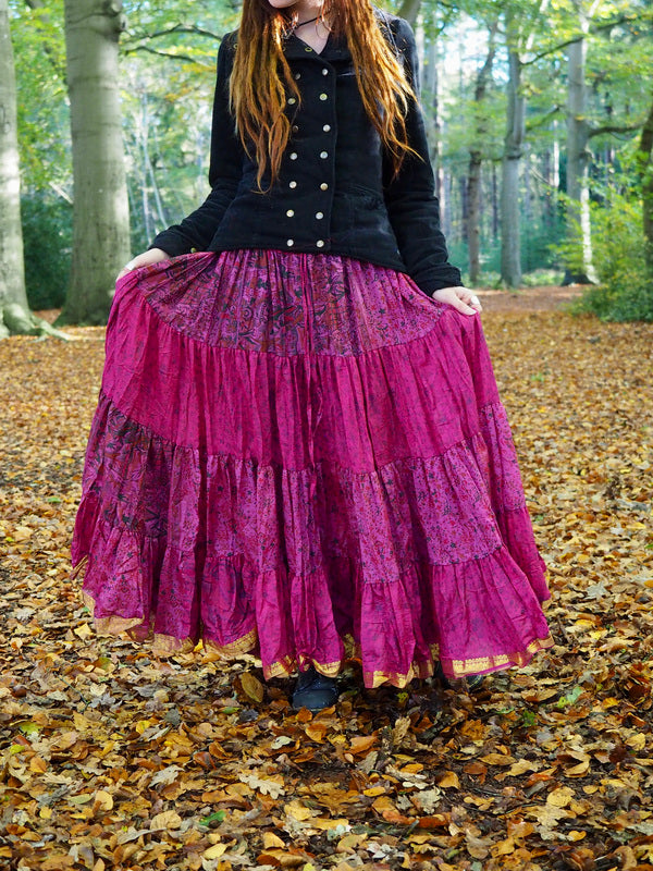 Ein fantastisch femininer, farbenfroher Rock im Gypsy-Bohemian-Stil aus recycelter Sari-Seide. Einfach wunderschön!