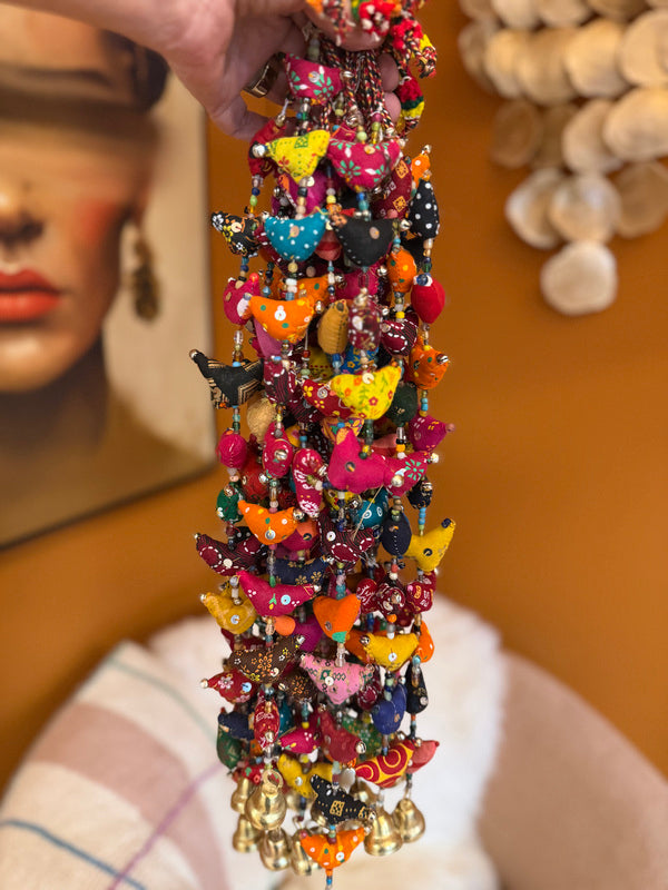 Each piece is unique, featuring elephants, birds, or sometimes a different shape. But always with cheerful bells and always handmade in India – with love, color, and character.