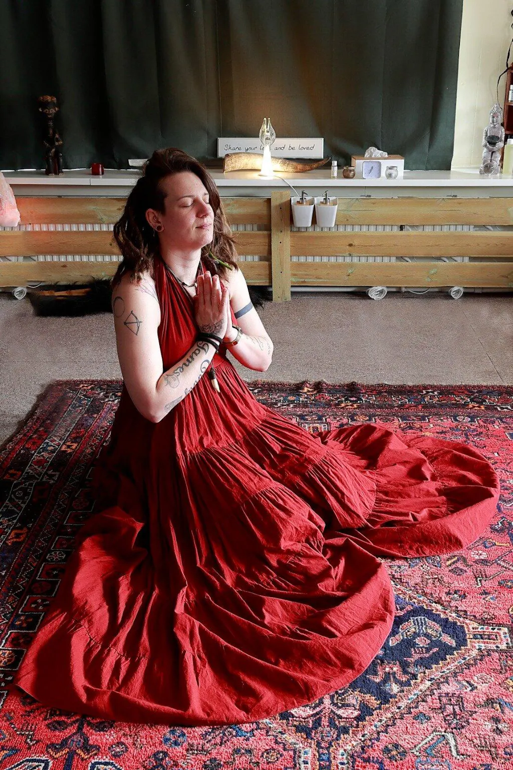 The back of the Freya Bra Top is a real eye-catcher with its beautiful braided band and brass 'Flower of life' detail. This detail is located on the strap, so it does not touch your skin and adds a touch of elegance to this top.