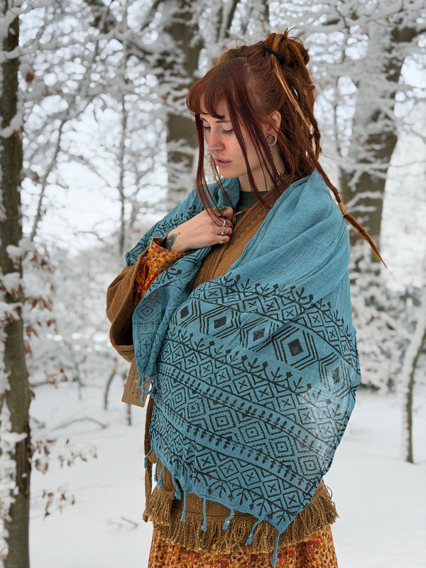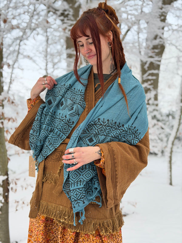 The raw cotton creates subtle irregularities in the weave, which gives each scarf a unique and authentic character.