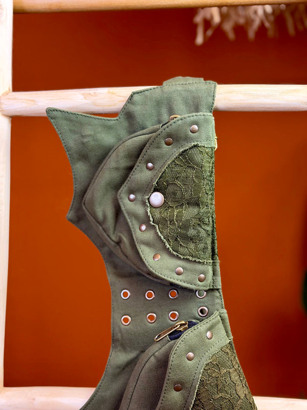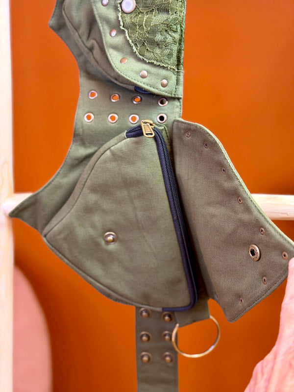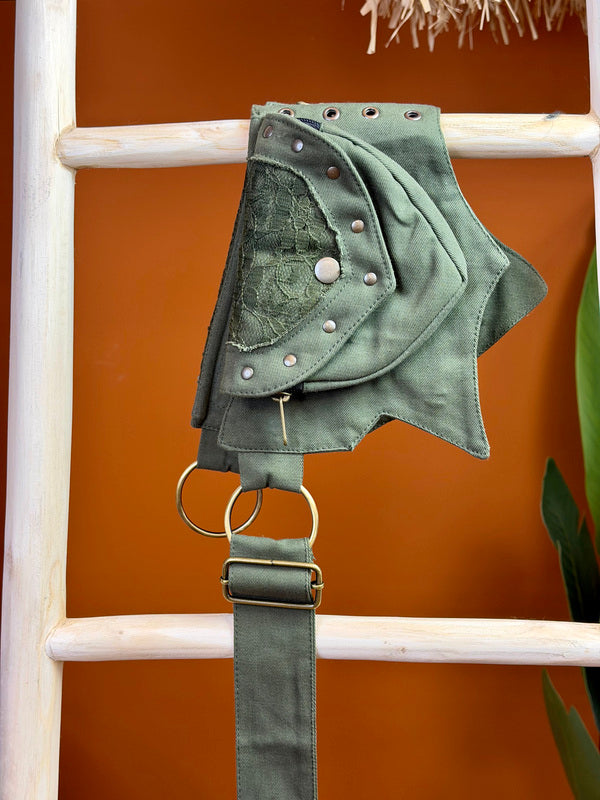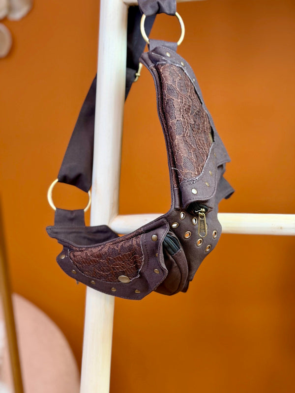 Deze prachtige hipbelt bestaat uit twee tasjes: ƩƩn grotere en ƩƩn kleinere, bevestigd aan een lange, verstelbare riem. Perfect om je essentials dicht bij je te dragen – of je nu op reis bent, een festival bezoekt of gewoon je handen vrij wilt houden.