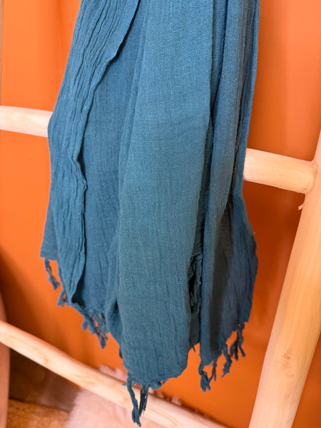 The raw cotton creates subtle irregularities in the weave, which gives each scarf a unique and authentic character.