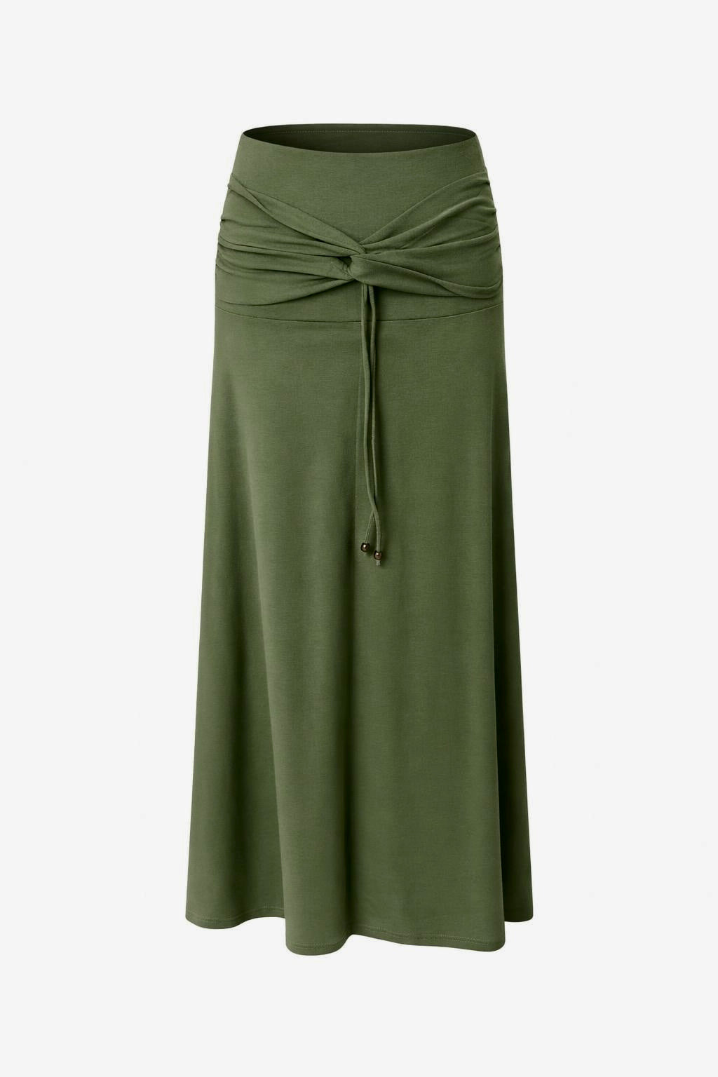 Wear the Luna skirt high on the waist for an elegant look, or let it fall casually over your hips thanks to the wide hem with stylish wrap band. The subtle cord with wooden beads and the flowing fabric give this skirt a unique, playful charm.