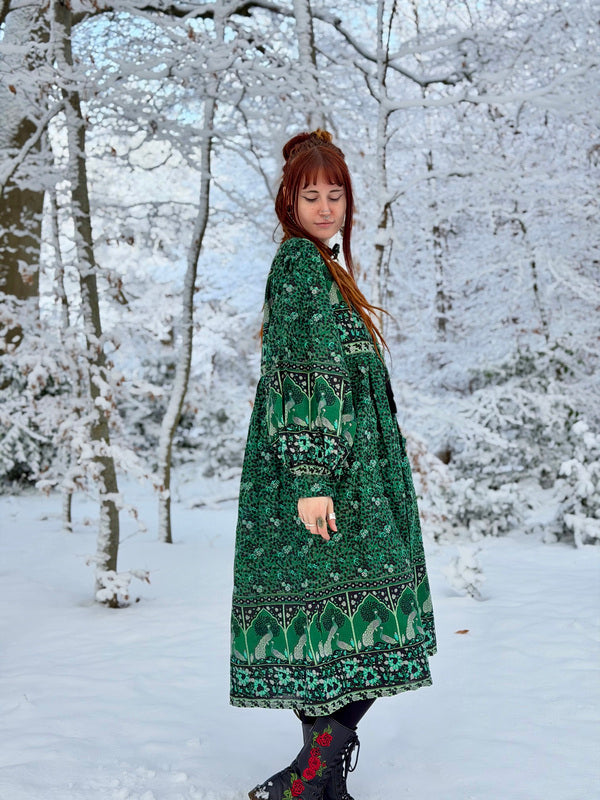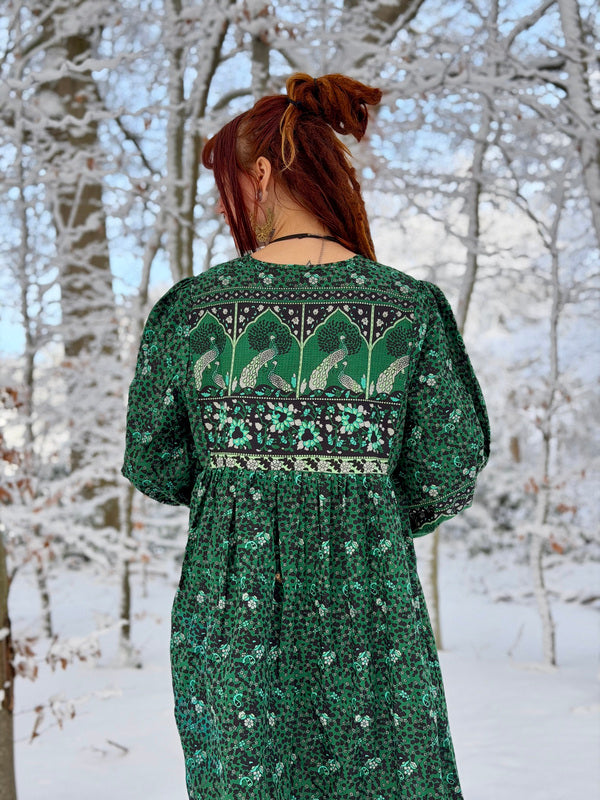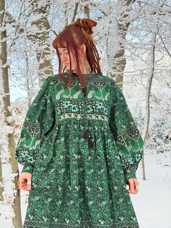 The material is Handblock print which makes the dress very special. So whether you are expecting or just looking for a dress that flatters your curves, the Angel Dress is for you! ❤️