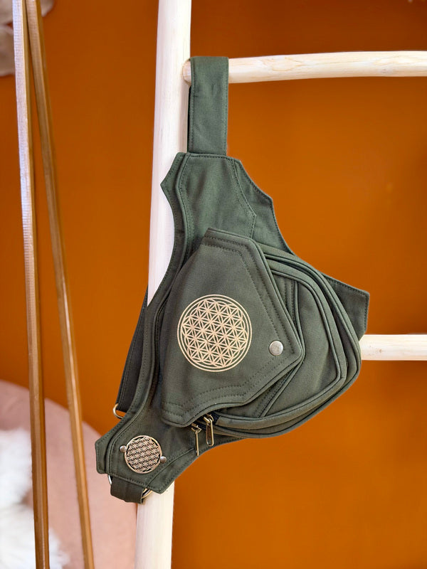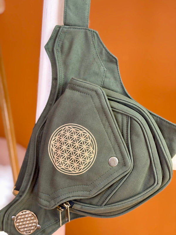 Deze prachtige hipbelt bestaat uit een tasje, maar achter de klep bevinden zich twee vakken met een hele sterke ritsĀ bevestigd aan een lange, verstelbare riem. Perfect om je essentials dicht bij je te dragen ā of je nu op reis bent, een festival bezoekt of gewoon je handen vrij wilt houden.