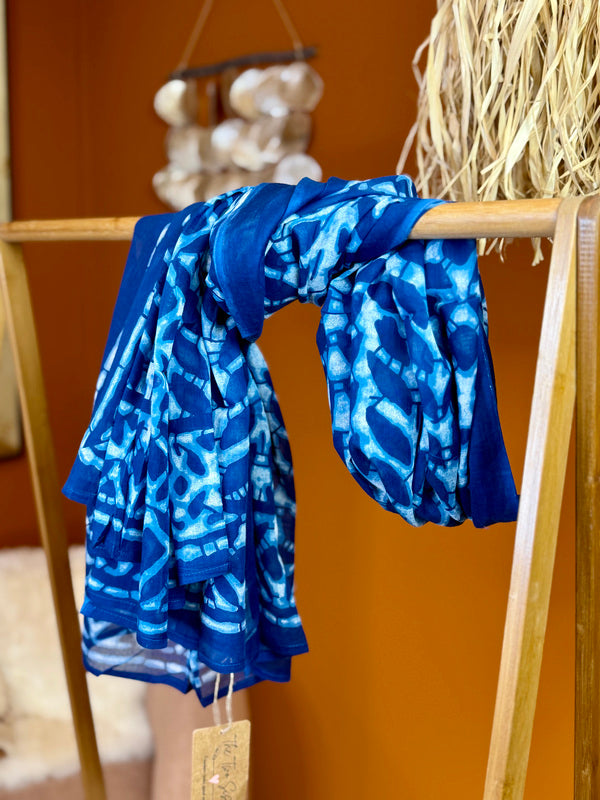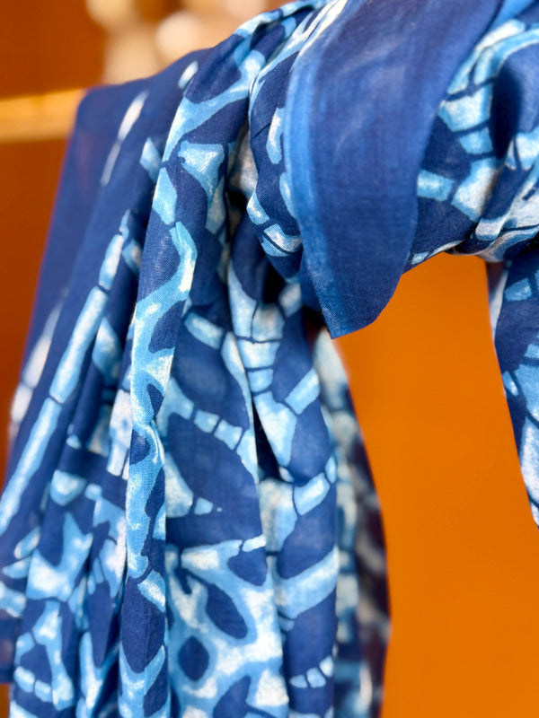 This amazing scarf is made of thin, airy cotton and printed entirely by hand using traditional Blockprint techniques. Each piece is truly Handmade with Love ! 💛