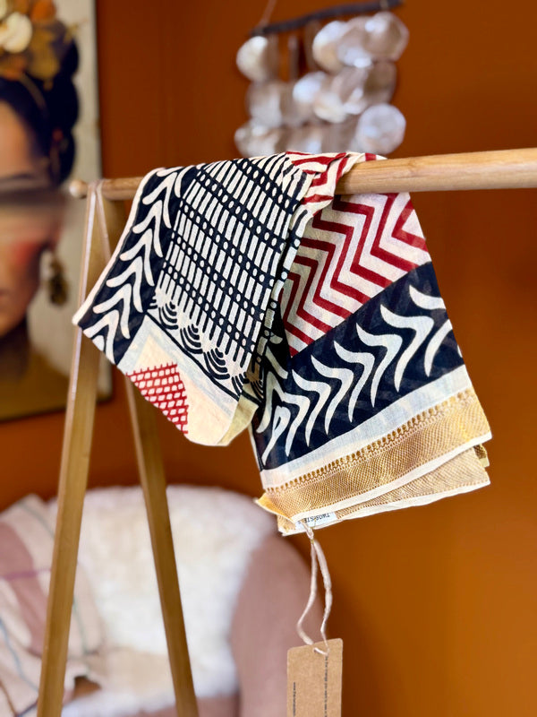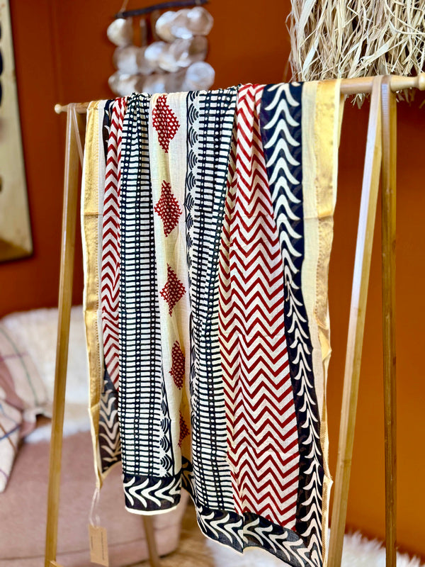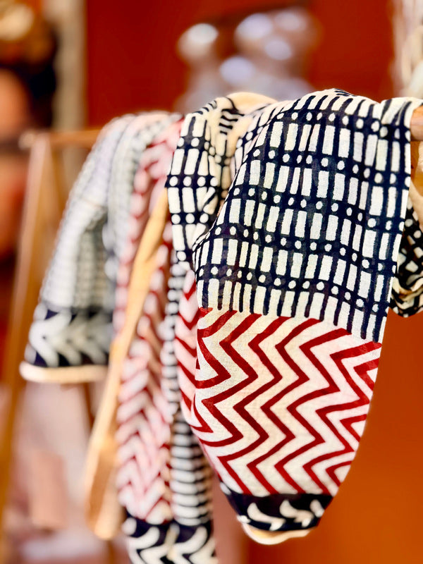 Puhspa Scarf Blockprint This amazing scarf is made of thin, airy cotton and printed entirely by hand using traditional Blockprint... Read more