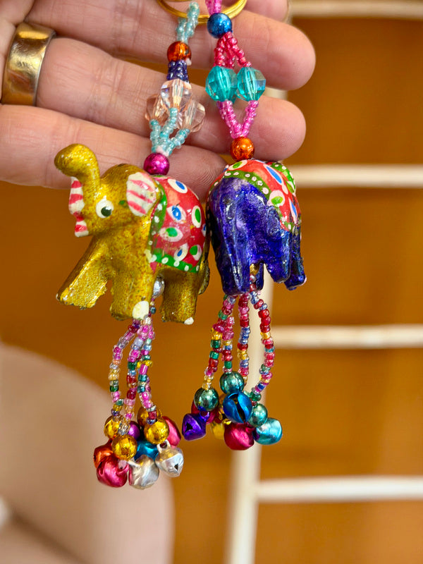 Each piece is unique, featuring elephants, birds, or sometimes a different shape. But always with cheerful bells and always handmade in India – with love, color, and character.