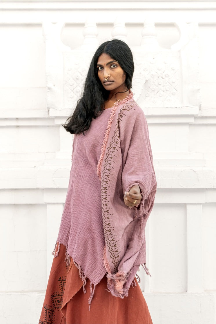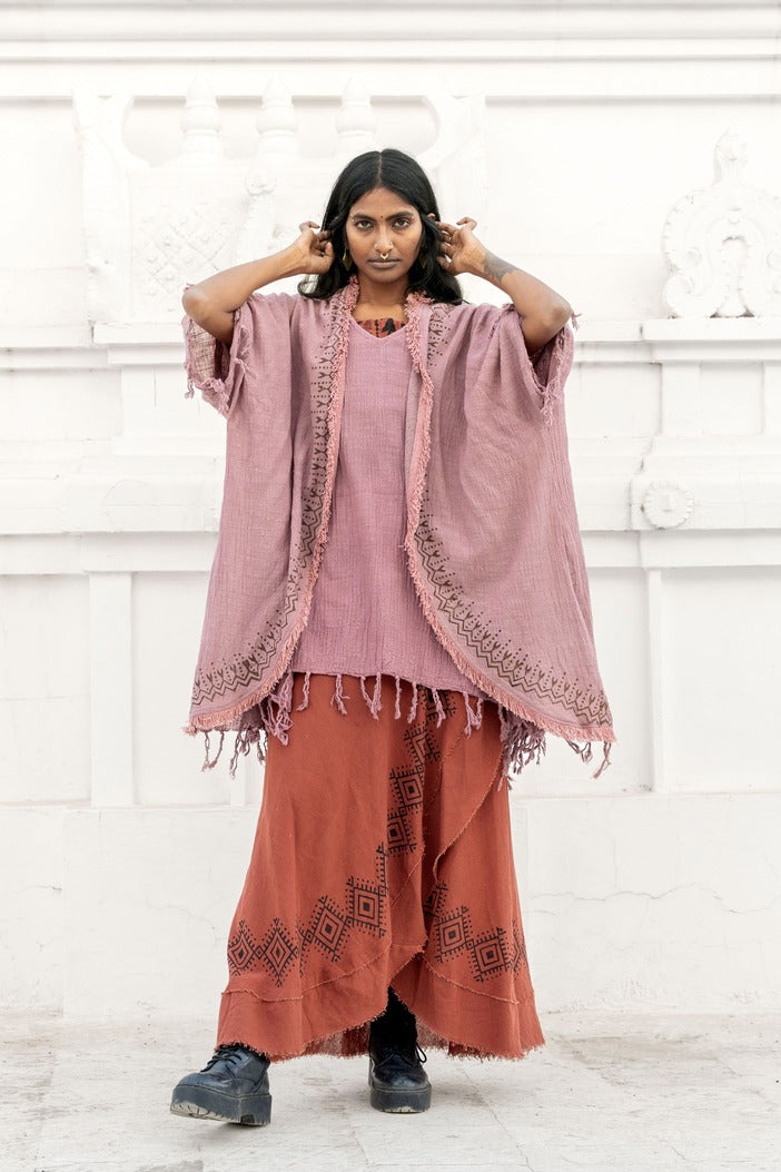What makes this kimono really special are the delicate fringes that run along the sleeves, the entire front and the back. And last but not least the hand-applied Aztec block print. They add a playful and bohemian touch, perfect for a stylish, relaxed look.