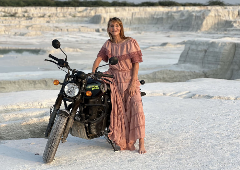 Twintig jaar geleden begon mijn droom. Tijdens mijn reizen naar India werd ik betoverd door de kleuren, stoffen en handgemaakte materialen die ik daar ontdekte. De warmte, de ambacht, de verhalen die in elk stukje stof verborgen zitten – het raakte me diep. Mijn liefde voor India en reizen groeide, en ik wilde niets liever dan vrouwen in Nederland laten ervaren wat ik daar zag en voelde: de magie van ontdekken, verbinden en het vieren van vrouw-zijn.