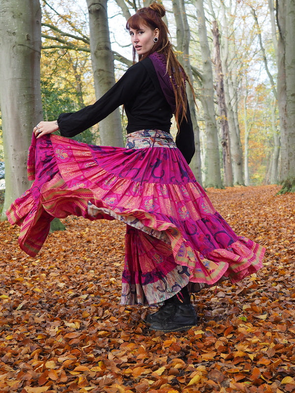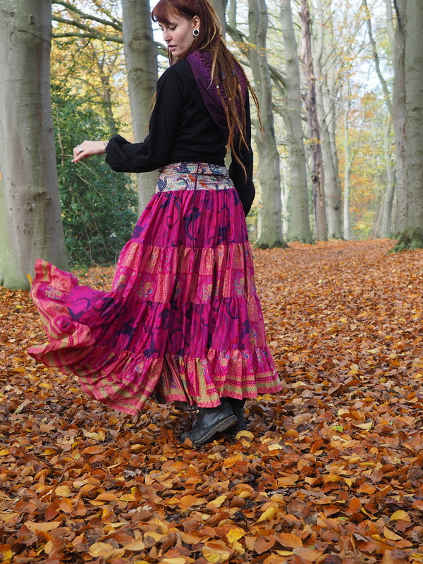 Bohemian Rok Bizar gave vrouwelijke Gypsy, Bohemian kleurrijke rok gemaakt van Upcycled Sari Zijde. Ontzettend mooi! Deze rok heeft twee koorden waardoor je de... Lees meer