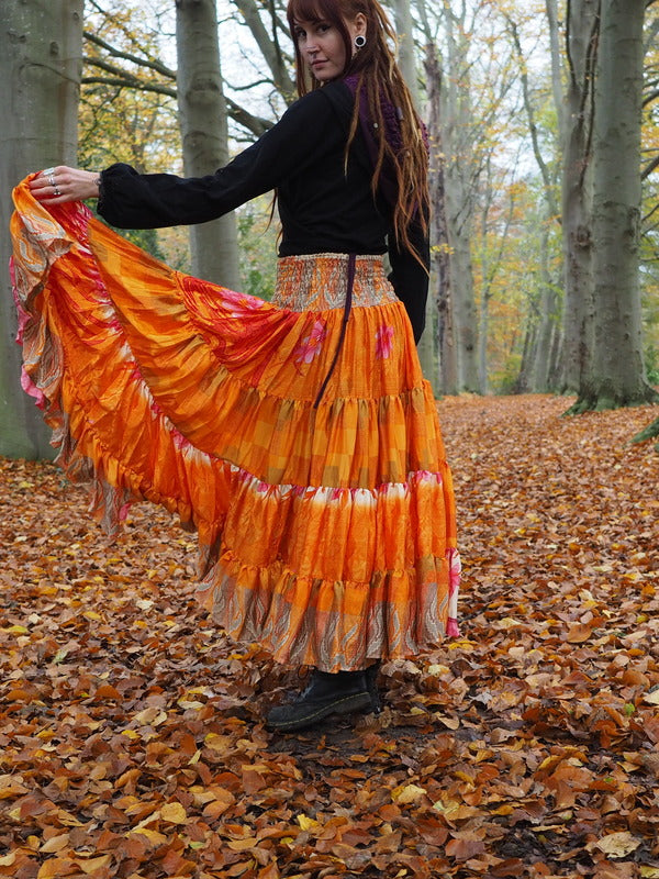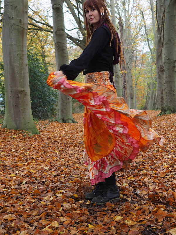 Bohemian Rok Bizar gave vrouwelijke Gypsy, Bohemian kleurrijke rok gemaakt van Upcycled Sari Zijde. Ontzettend mooi! Deze rok heeft twee koorden waardoor je de... Lees meer