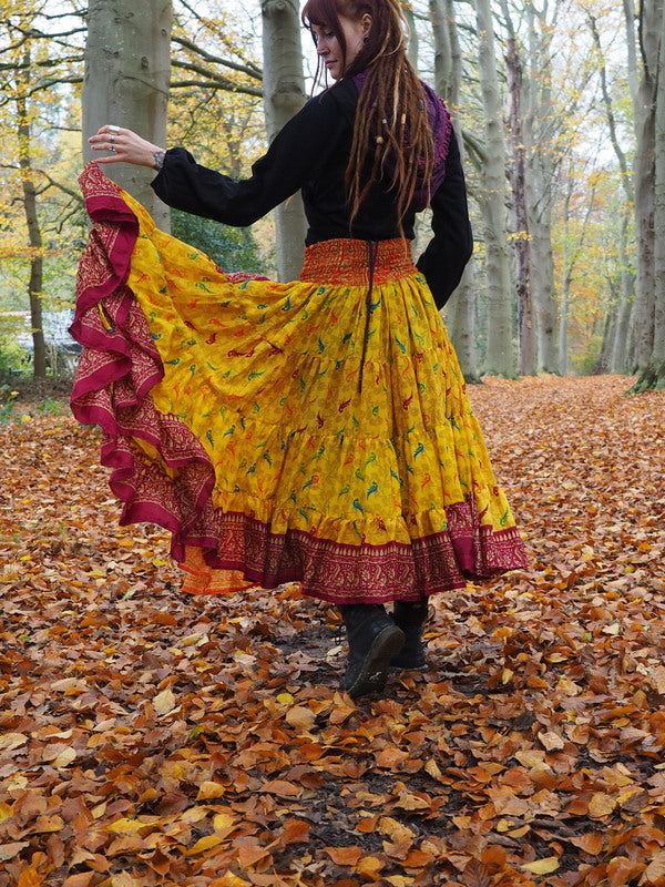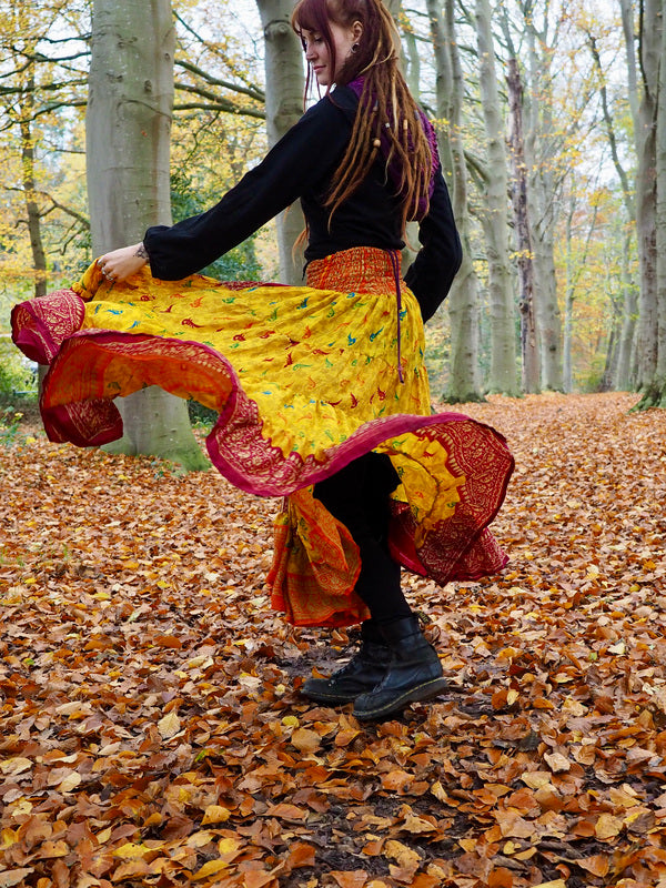 Bohemian Rok Bizar gave vrouwelijke Gypsy, Bohemian kleurrijke rok gemaakt van Upcycled Sari Zijde. Ontzettend mooi! Deze rok heeft twee koorden waardoor je de... Lees meer
