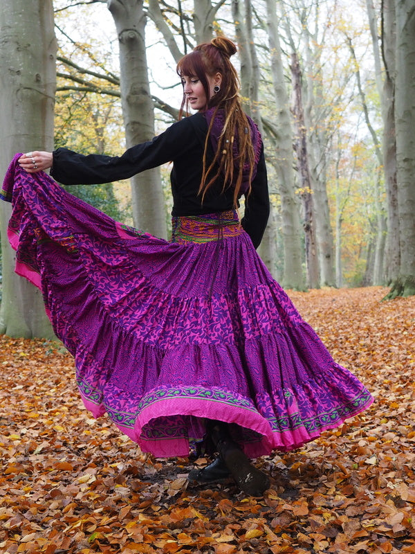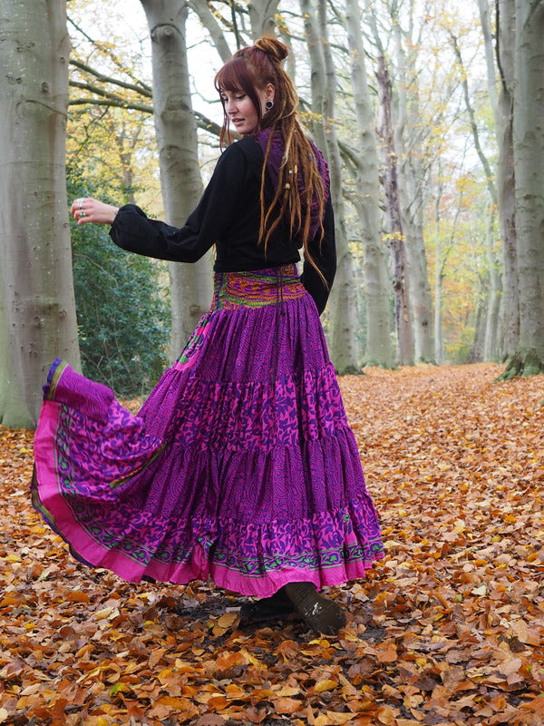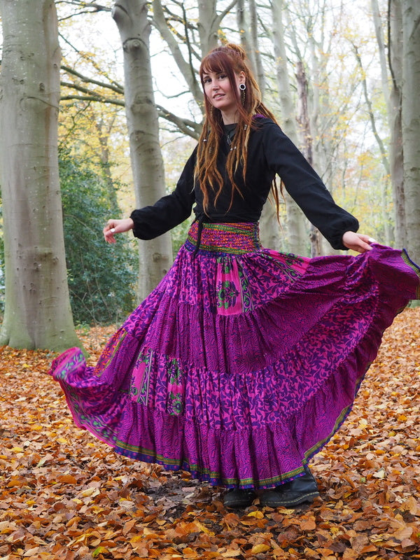 Bohemian Rok Bizar gave vrouwelijke Gypsy, Bohemian kleurrijke rok gemaakt van Upcycled Sari Zijde. Ontzettend mooi! Deze rok heeft twee koorden waardoor je de... Lees meer