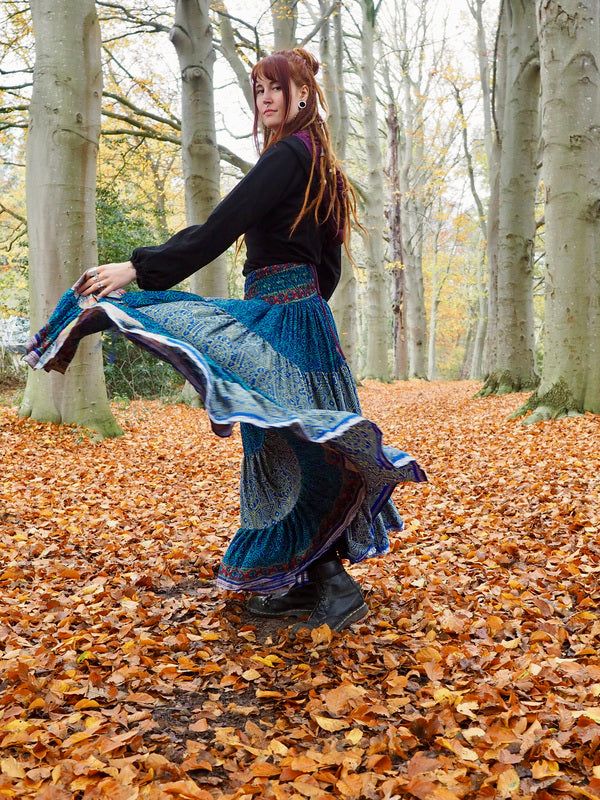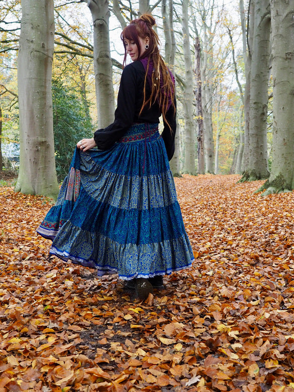 Bohemian Rok Bizar gave vrouwelijke Gypsy, Bohemian kleurrijke rok gemaakt van Upcycled Sari Zijde. Ontzettend mooi! Deze rok heeft twee koorden waardoor je de... Lees meer