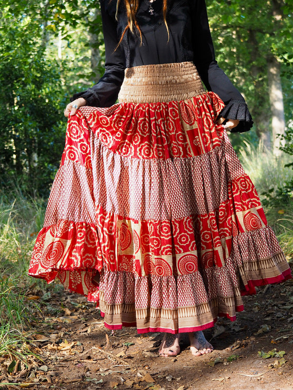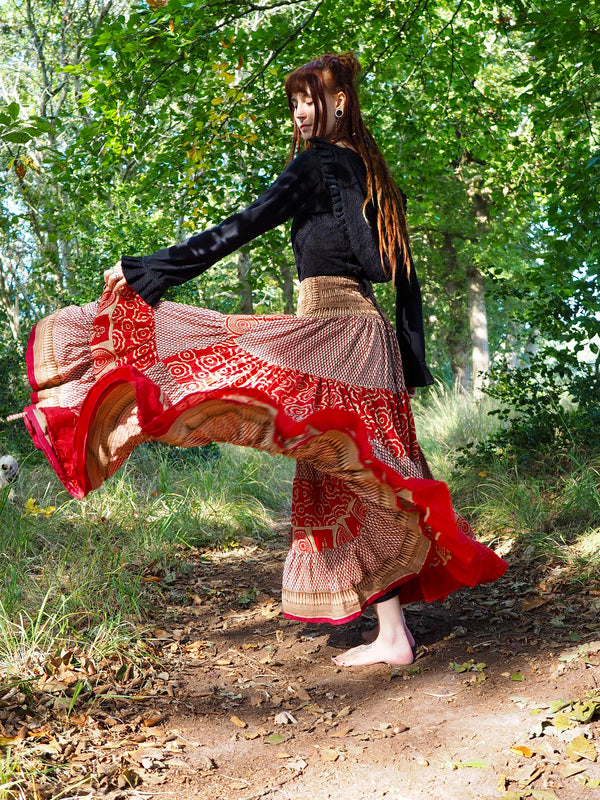 Bohemian Rok Bizar gave vrouwelijke Gypsy, Bohemian kleurrijke rok gemaakt van Upcycled Sari Zijde. Ontzettend mooi! Deze rok heeft twee koorden waardoor je de... Lees meer