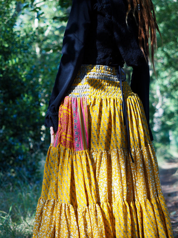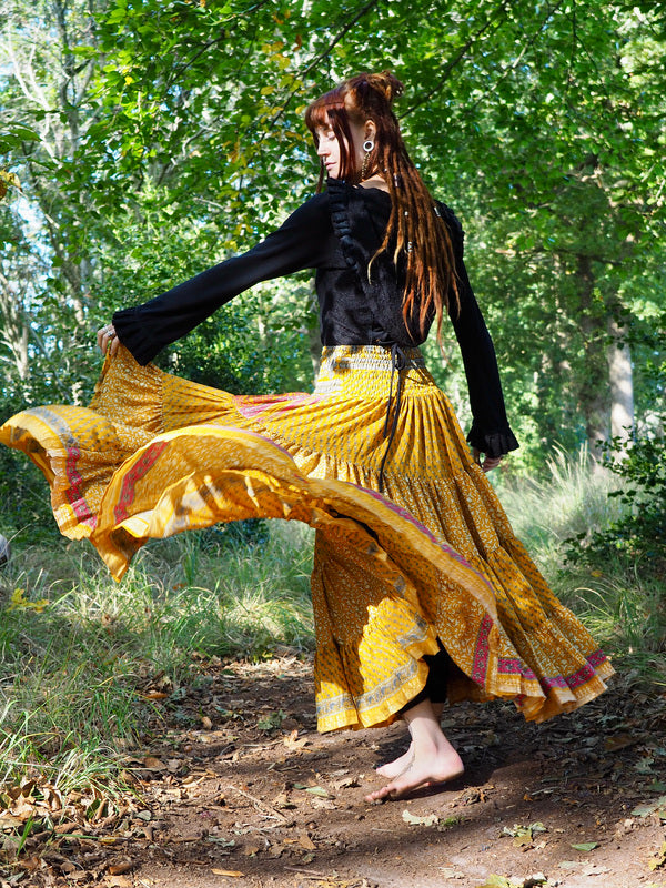 Bohemian Rok Bizar gave vrouwelijke Gypsy, Bohemian kleurrijke rok gemaakt van Upcycled Sari Zijde. Ontzettend mooi! Deze rok heeft twee koorden waardoor je de... Lees meer