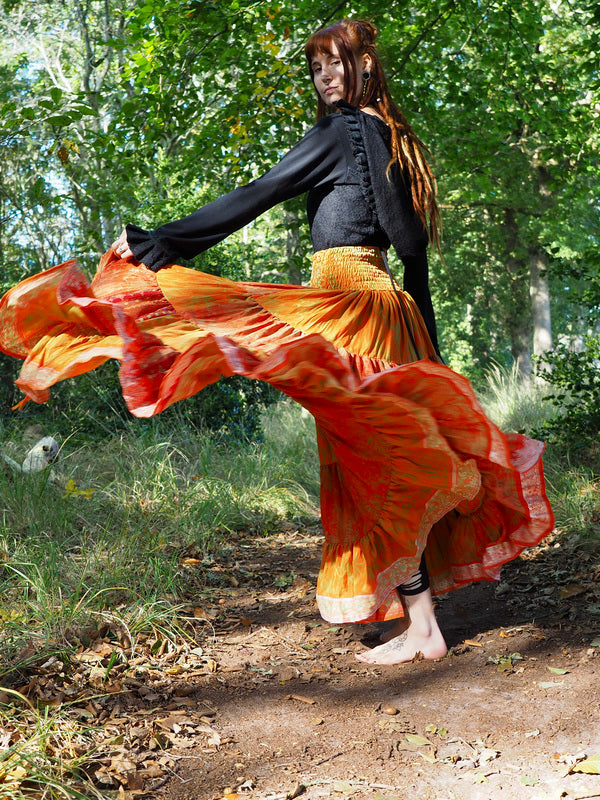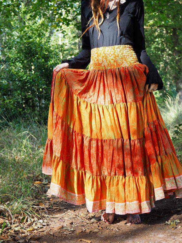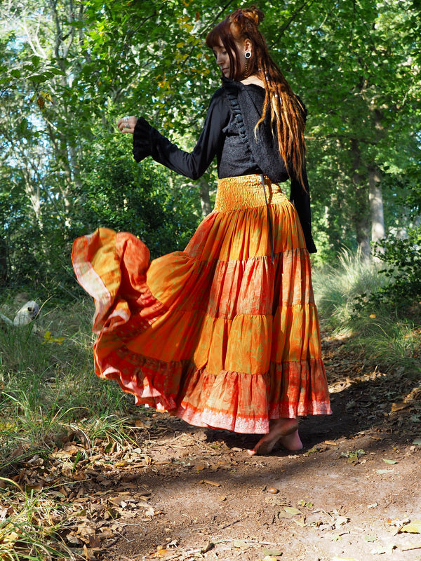 Bohemian Rok Bizar gave vrouwelijke Gypsy, Bohemian kleurrijke rok gemaakt van Upcycled Sari Zijde. Ontzettend mooi! Deze rok heeft twee koorden waardoor je de... Lees meer