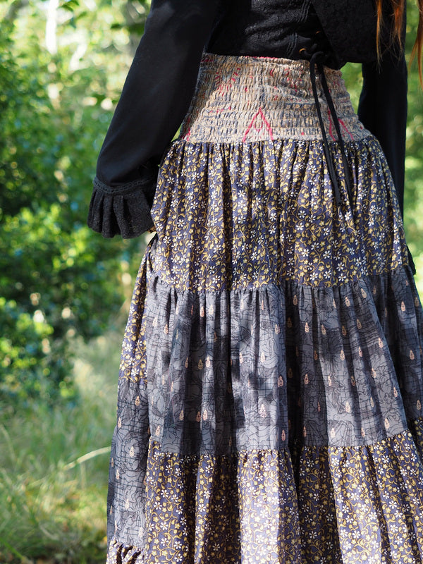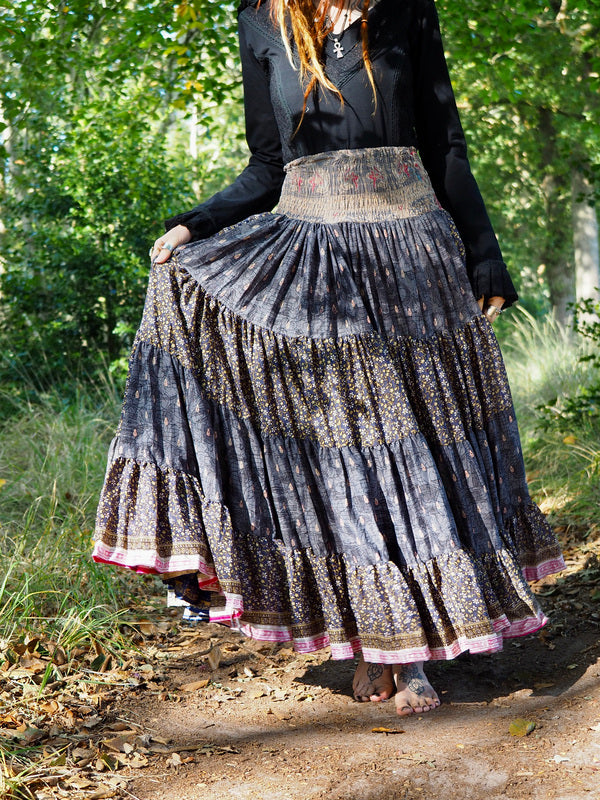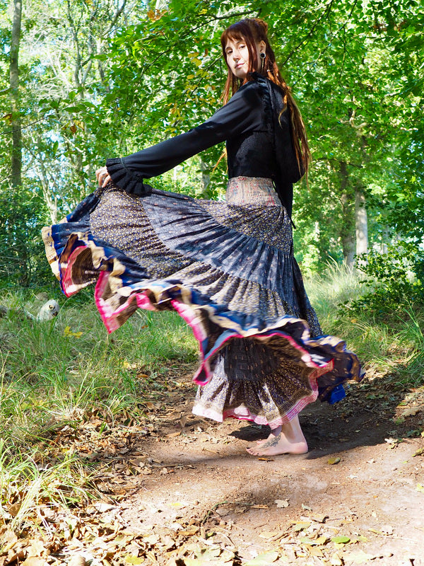 Bohemian Rok Bizar gave vrouwelijke Gypsy, Bohemian kleurrijke rok gemaakt van Upcycled Sari Zijde. Ontzettend mooi! Deze rok heeft twee koorden waardoor je de... Lees meer