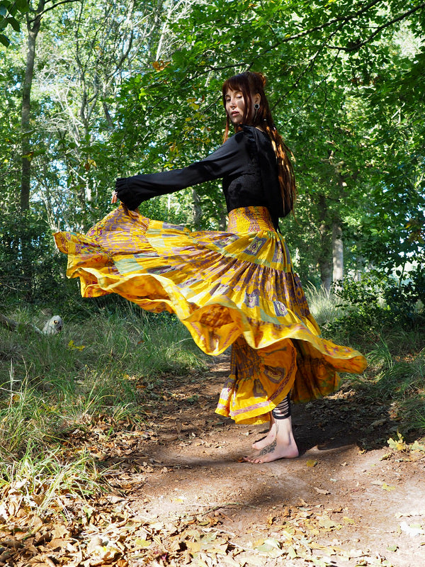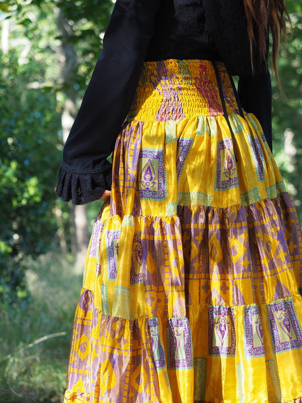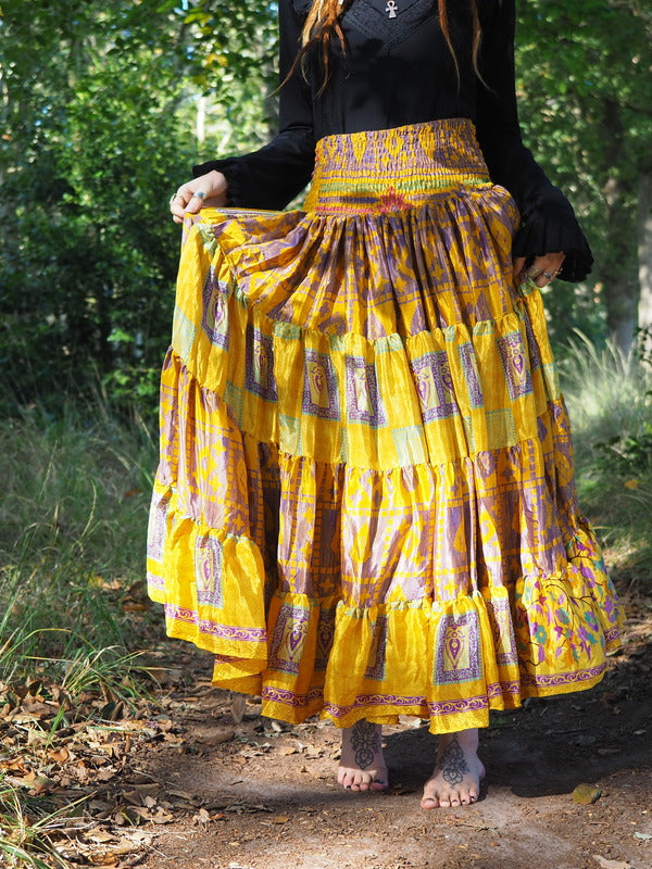 Bohemian Rok Bizar gave vrouwelijke Gypsy, Bohemian kleurrijke rok gemaakt van Upcycled Sari Zijde. Ontzettend mooi! Deze rok heeft twee koorden waardoor je de... Lees meer