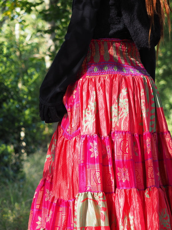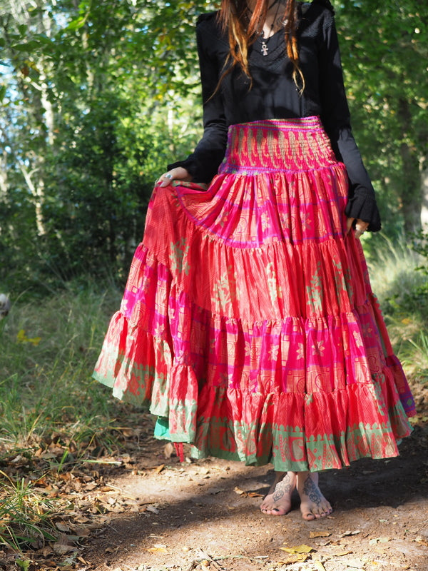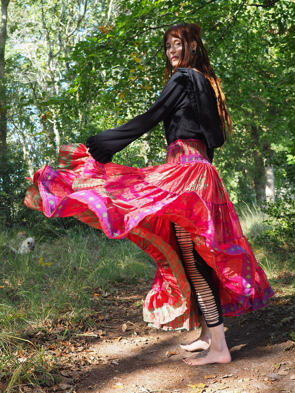 Bohemian Rok Bizar gave vrouwelijke Gypsy, Bohemian kleurrijke rok gemaakt van Upcycled Sari Zijde. Ontzettend mooi! Deze rok heeft twee koorden waardoor je de... Lees meer