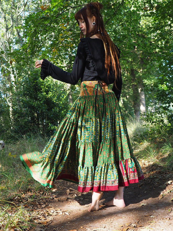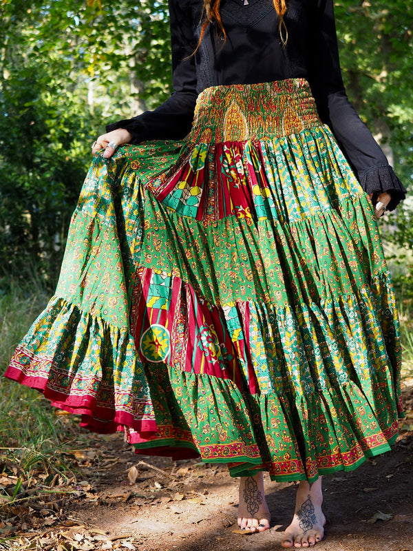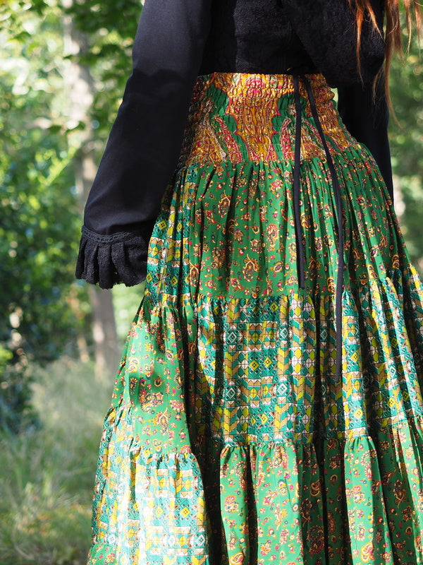 Bohemian Rok Bizar gave vrouwelijke Gypsy, Bohemian kleurrijke rok gemaakt van Upcycled Sari Zijde. Ontzettend mooi! Deze rok heeft twee koorden waardoor je de... Lees meer