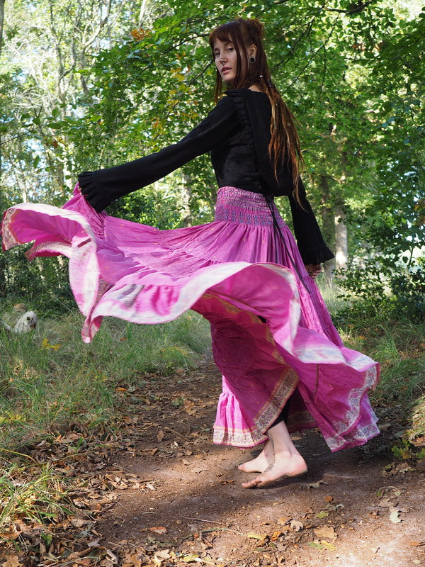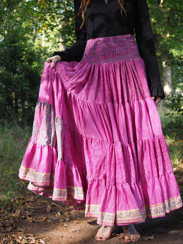 Bohemian Rok Bizar gave vrouwelijke Gypsy, Bohemian kleurrijke rok gemaakt van Upcycled Sari Zijde. Ontzettend mooi! Deze rok heeft twee koorden waardoor je de... Lees meer