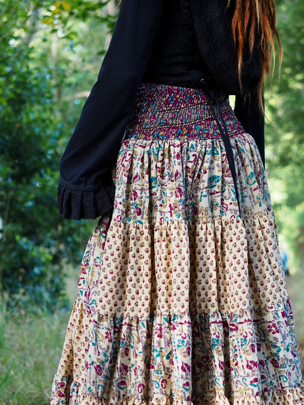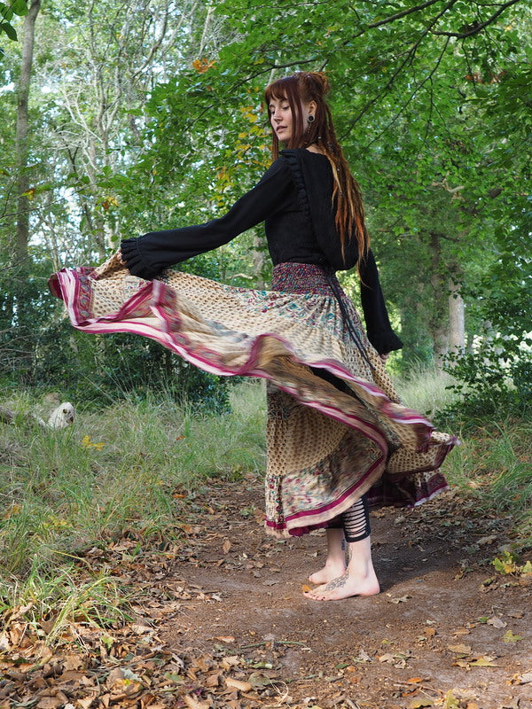 Bohemian Rok Bizar gave vrouwelijke Gypsy, Bohemian kleurrijke rok gemaakt van Upcycled Sari Zijde. Ontzettend mooi! Deze rok heeft twee koorden waardoor je de... Lees meer