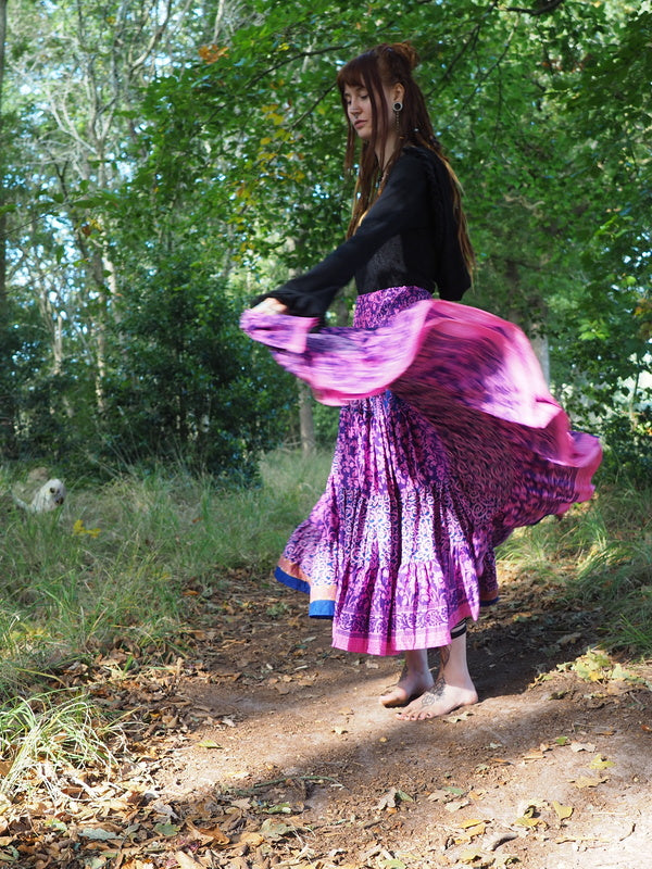 Bohemian Rok Bizar gave vrouwelijke Gypsy, Bohemian kleurrijke rok gemaakt van Upcycled Sari Zijde. Ontzettend mooi! Deze rok heeft twee koorden waardoor je de... Lees meer