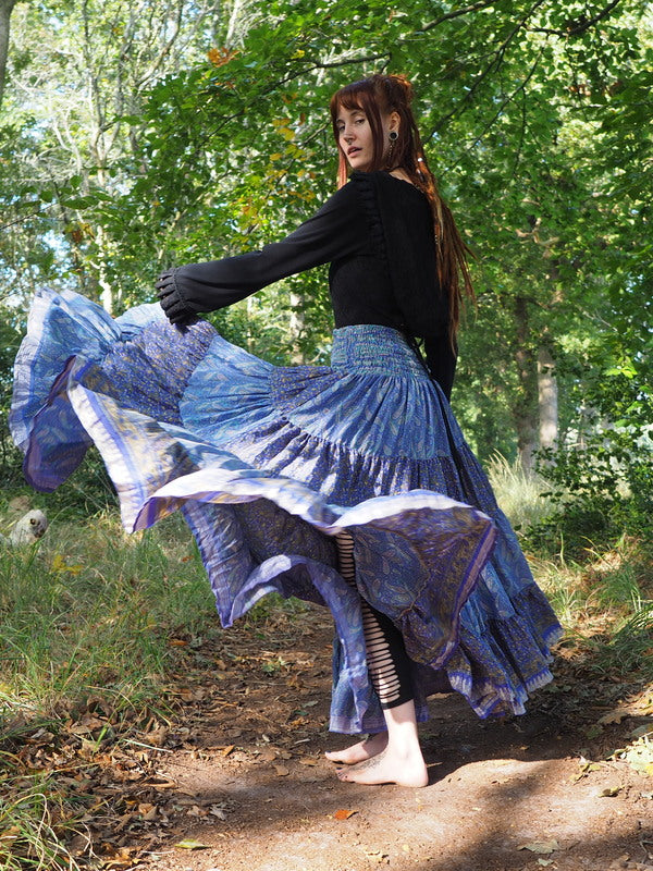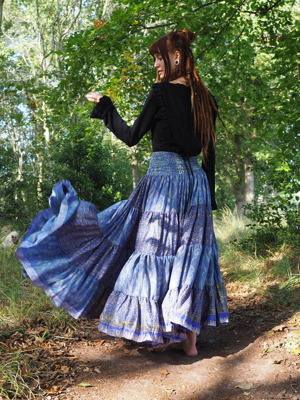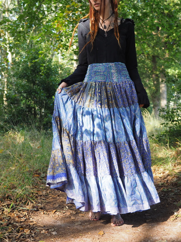 Bohemian Rok Bizar gave vrouwelijke Gypsy, Bohemian kleurrijke rok gemaakt van Upcycled Sari Zijde. Ontzettend mooi! Deze rok heeft twee koorden waardoor je de... Lees meer