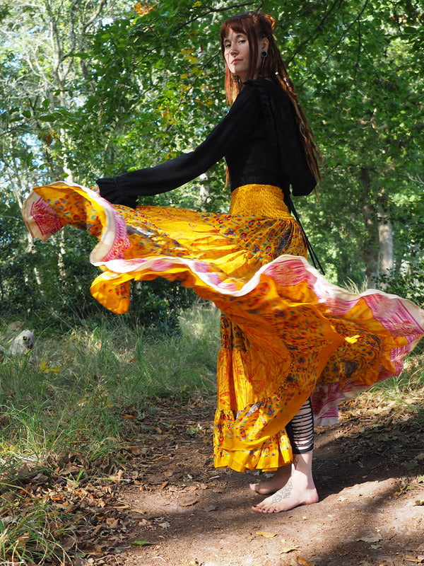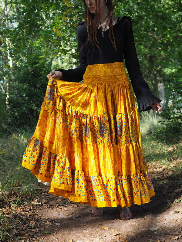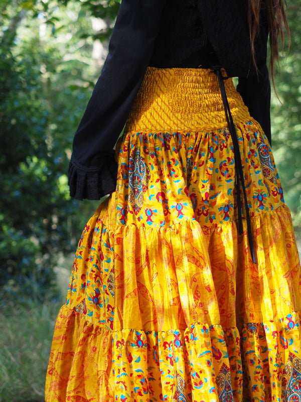 Bohemian Rok Bizar gave vrouwelijke Gypsy, Bohemian kleurrijke rok gemaakt van Upcycled Sari Zijde. Ontzettend mooi! Deze rok heeft twee koorden waardoor je de... Lees meer