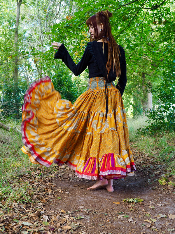 Bohemian Rok Bizar gave vrouwelijke Gypsy, Bohemian kleurrijke rok gemaakt van Upcycled Sari Zijde. Ontzettend mooi! Deze rok heeft twee koorden waardoor je de... Lees meer