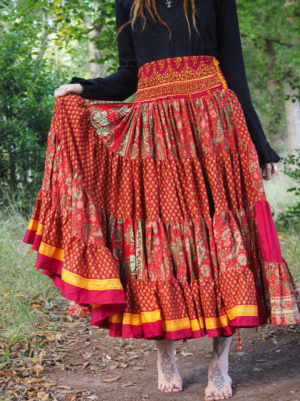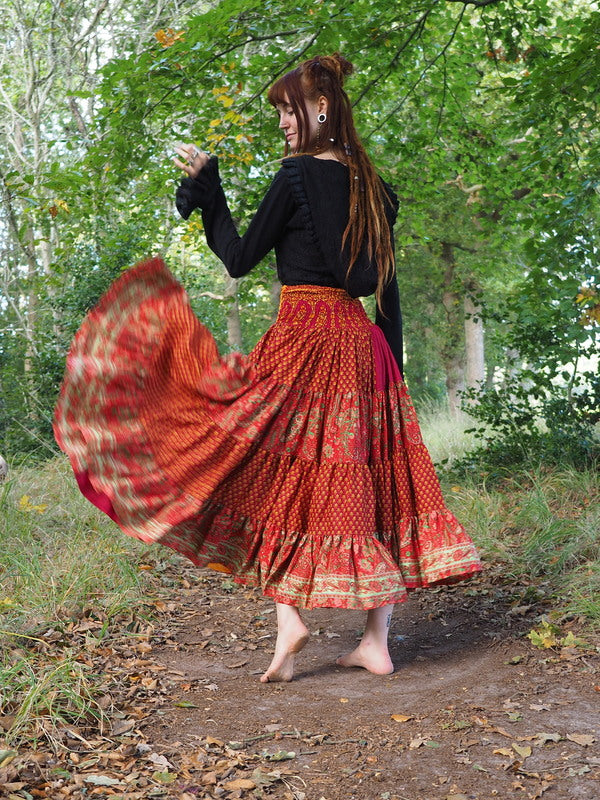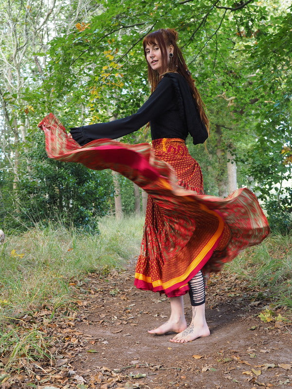 Bohemian Rok Bizar gave vrouwelijke Gypsy, Bohemian kleurrijke rok gemaakt van Upcycled Sari Zijde. Ontzettend mooi! Deze rok heeft twee koorden waardoor je de... Lees meer