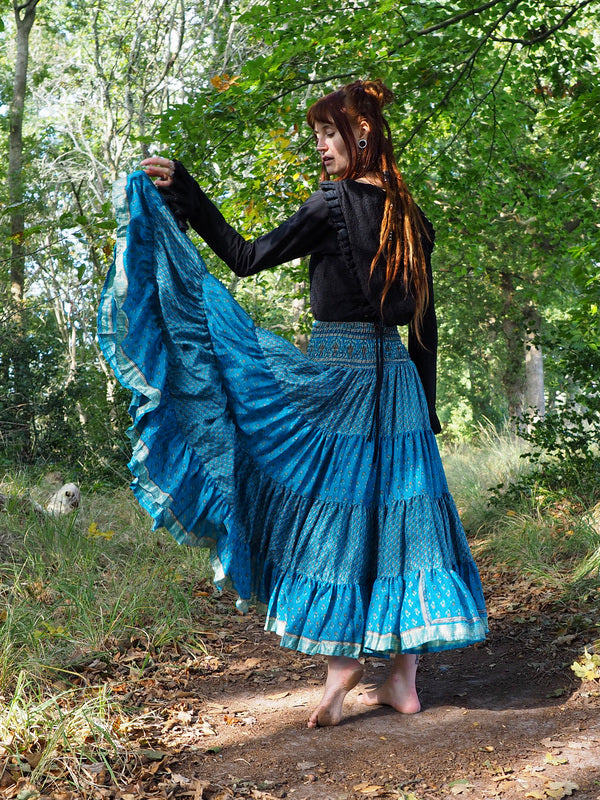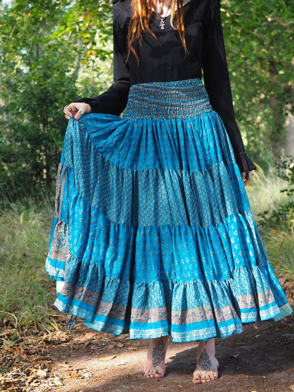 Bohemian Rok Bizar gave vrouwelijke Gypsy, Bohemian kleurrijke rok gemaakt van Upcycled Sari Zijde. Ontzettend mooi! Deze rok heeft twee koorden waardoor je de... Lees meer
