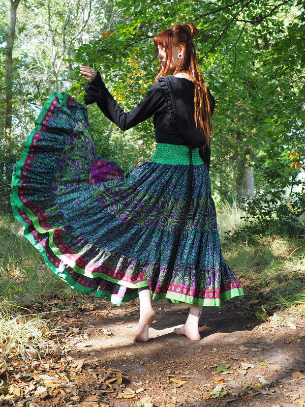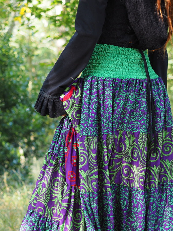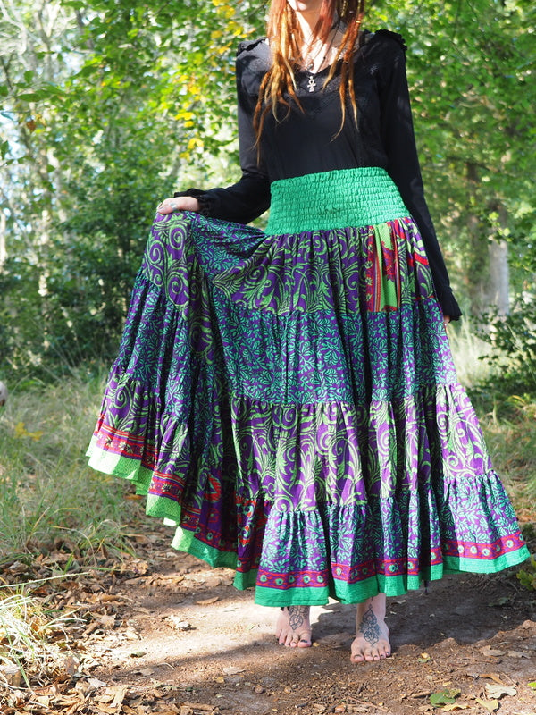 Bohemian Rok Bizar gave vrouwelijke Gypsy, Bohemian kleurrijke rok gemaakt van Upcycled Sari Zijde. Ontzettend mooi! Deze rok heeft twee koorden waardoor je de... Lees meer