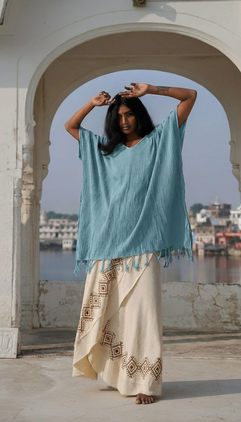 De veelzijdigheid van deze poncho is eindeloos. Combineer hem moeiteloos met andere items uit onze Nomad Chic-collectie – kies voor ton-sur-ton in dezelfde kleur voor een harmonieuze look, of mix en match met een andere kleur voor een speelse touch.