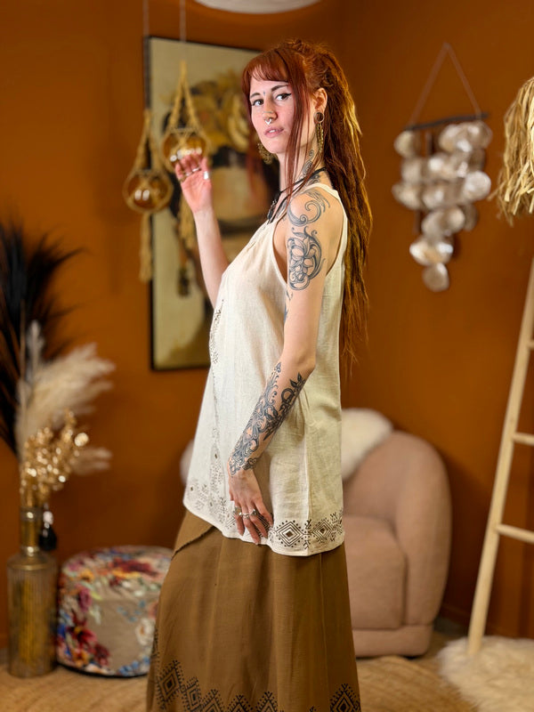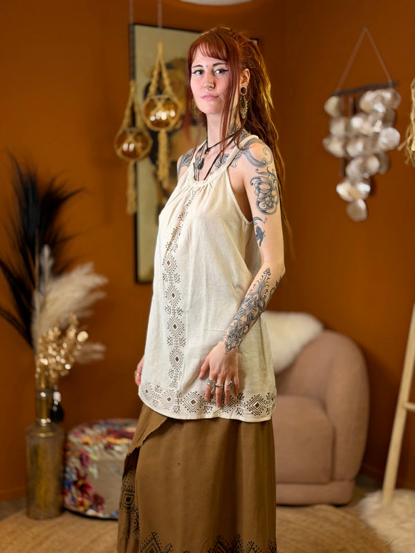 Earth Song Zomertop - Veelzijdige Bohemian Top met Aztec PrintOntdek de Earth Song top uit onze Nomad Chic collectie -... Lees meer