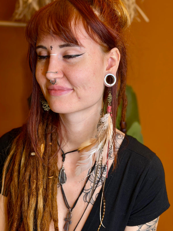 Enkele oorhanger van echte veren – handgemaakt en magisch uniek