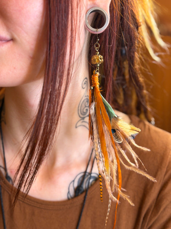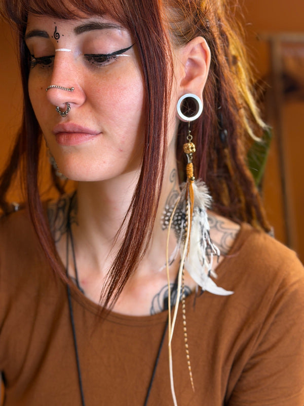 Enkele oorhanger van echte veren – handgemaakt en magisch uniek
