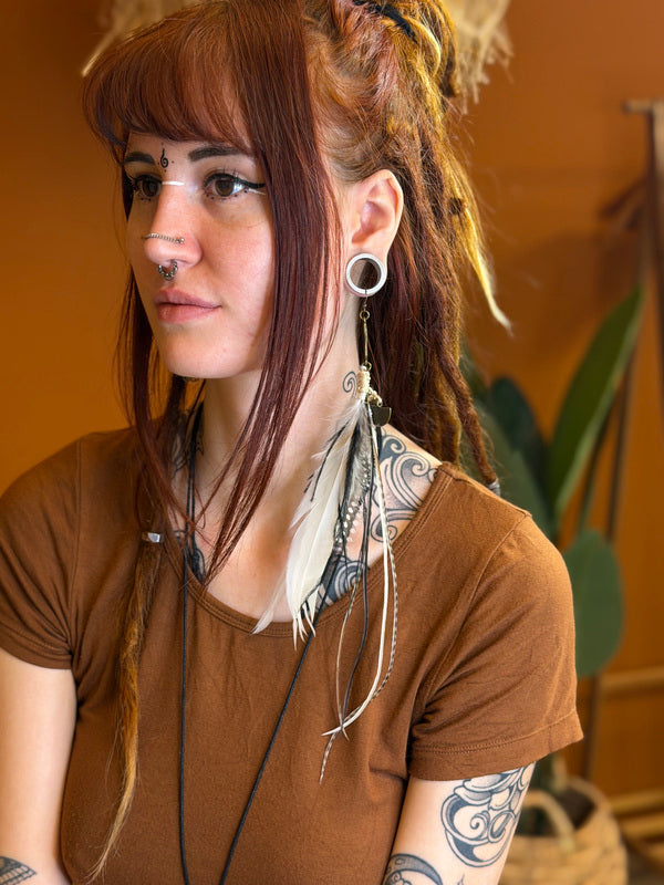 Enkele oorhanger van echte veren – handgemaakt en magisch uniek