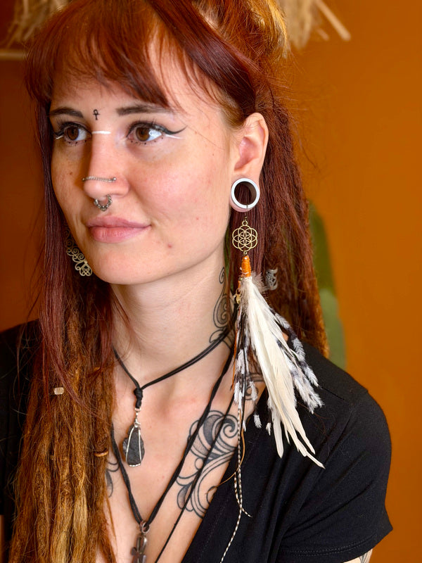 Enkele oorhanger van echte veren – handgemaakt en magisch uniek